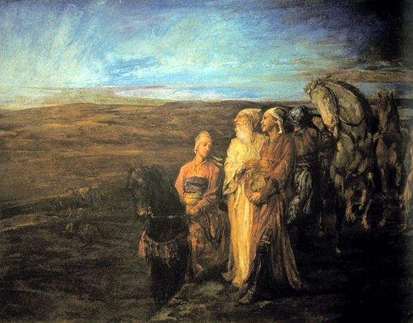 La FARGE - THE THREE WISE MEN Whenever we look, we can only recognize things to the extent that we can match those forms to something in our collection of visual memories from experience. The photograph, Looking East from St. George's Chapel Tower, and the many other images we have looked at from this area, has added to your collection of visual memories such that you might recognize the background on the left half of this painting as the area by Berkeley's Rock and Second Beach. Knowing that La Farge was the painter and that he did lots of paintings in this area is important for that perception, since context influences our perceptions. Without those two facts, even being familiar with this area, you would be much less likely to see the background as Second Beach, because knowing that we are looking at "The Three Wise Men," we would not expect them to be traveling around Newport. |