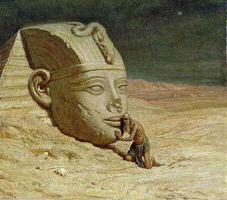 Here is another Sphinx by Elihu Vedder. Note that this Spinx has an object on the forehead.