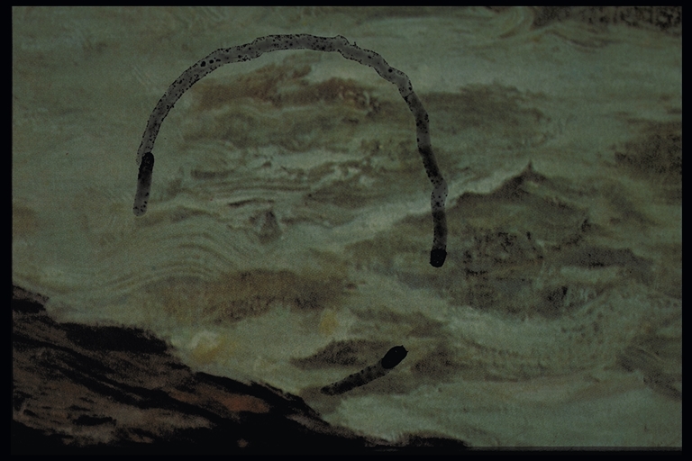 WINSLOW HOMER - DRIFTWOOD detail (WH face marked) Start here by seeing his long moustache. I added the black line to outline his head. This face in the water in Driftwood is subtle, but sufficient to suggest his face with a long moustache. His eyes are closed.. |